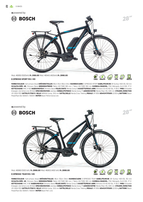 Mod. 46950 (500Wh) Fr. 3190.00 Mod. 46943 (400Wh) Fr. 2990.00 E-SPRESSO SPORT 510 / 410