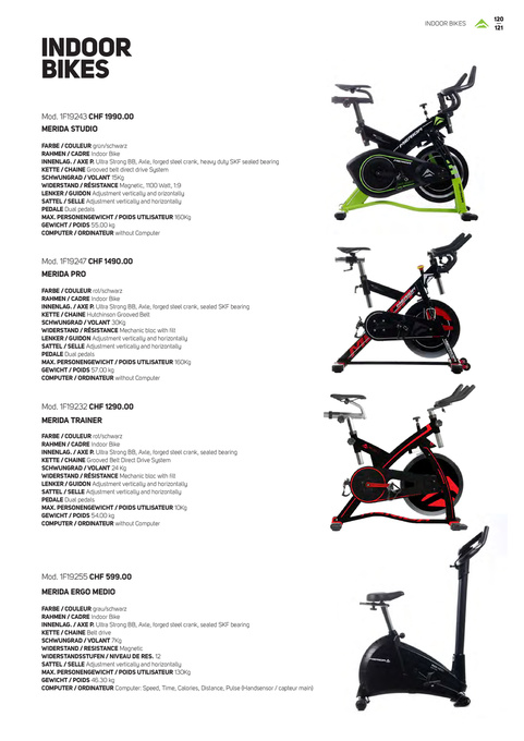FarBe / coULeUr grau/schwarz rahmen / caDre indoor Bike innenLaG. / aXe P. Ultra strong BB, Axle, forged steel crank, sealed skF bearing Kette / chaine Belt drive schwUnGraD / voLant 7kg wiDerstanD / resistance Magnetic wiDerstanDsstUFen / niveaU De res. 12 satteL / seLLe Adjustment vertically and horizontally maX. PersonenGewicht / PoiDs UtiLisateUr 130kg Gewicht / PoiDs 46.30 kg comPUter / orDinateUr Computer: speed, Time, Calories, Distance, Pulse (Handsensor / capteur main)