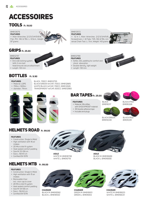 8M613572 FEATURES + 12 in 1, Allen Wrenches: 2/2.5/3/4/5/6, screwdrivers: + & Flate, t25, 14G & 15G, Universal chain tool. L: 7cm, Weight: 143 grams 8M613679 FEATURES + Allen Wrenches: 2/2.5/3/4/5/6/8, Flat, Ph1, 14G & 15G. L: 6.5cm, Weight: 97 grams