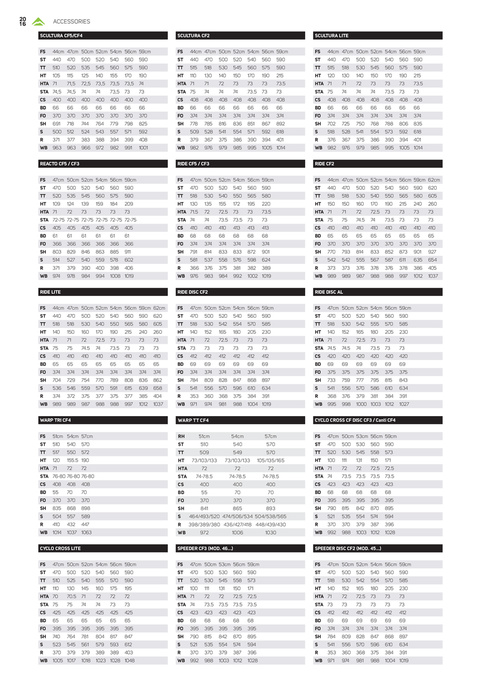 SCULTURA CF5/CF4 FS ST TT HT 44cm 47cm 50cm 52cm 54cm 56cm 59cm 440 510 105 470 520 115 71,5 74,5 400 66 370 718 512 377 963 500 535 125 72,5 74 400 66 370 744 524 383 966 520 545 140 73,5 74 400 66 370 764 543 388 972 540 560 155 73,5 73,5 400 66 370 779 557 394 982 560 575 170 73,5 73 400 66 370 798 571 399 991 590 590 190 74 73 400 66 370 825 592 408 1001 SCULTURA CF2 FS ST TT HT 44cm 47cm 50cm 52cm 54cm 56cm 59cm 440 515 110 470 518 130 71 74 408 66 374 785 528 367 976 500 530 140 72 74 408 66 374 816 541 375 979 520 545 150 73 74 408 66 374 836 554 386 985 540 560 170 73 73.5 408 66 374 851 571 390 995 560 575 190 73 73 408 66 374 867 592 394 590 590 215 73.5 73 408 66 374 892 618 401 SCULTURA LITE FS ST TT HT 44cm 47cm 50cm 52cm 54cm 56cm 59cm 440 515 120 470 518 130 71 74 408 66 374 725 528 367 976 500 530 140 72 74 408 66 374 750 541 375 979 520 545 150 73 74 408 66 374 768 554 386 985 540 560 170 73 73.5 408 66 374 788 573 390 995 560 575 190 73 73 408 66 374 806 592 394 590 590 215 73.5 73 408 66 374 835 618 401