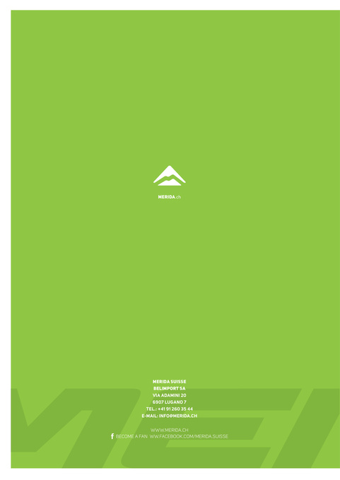 merida.ch merida SuiSSe Belimport Sa via adamini 20 6907 Lugano 7 TeL.: +41 91 260 35 44 e-maiL: info@merida.ch www.merida.ch Become a Fan ww.FaceBook.com/merida.suisse
