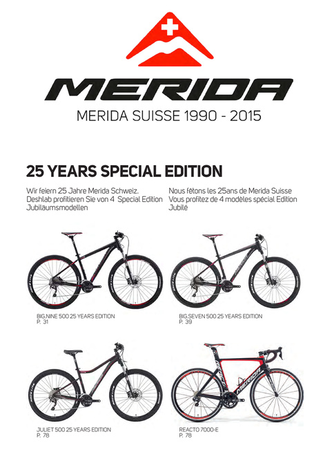 Wir feiern 25 Jahre Merida Schweiz. Nous fêtons les 25ans de Merida Suisse Deshlab profitieren Sie von 4 Special Edition Vous profitez de 4 modèles spécial Edition Jubiläumsmodellen Jubilé